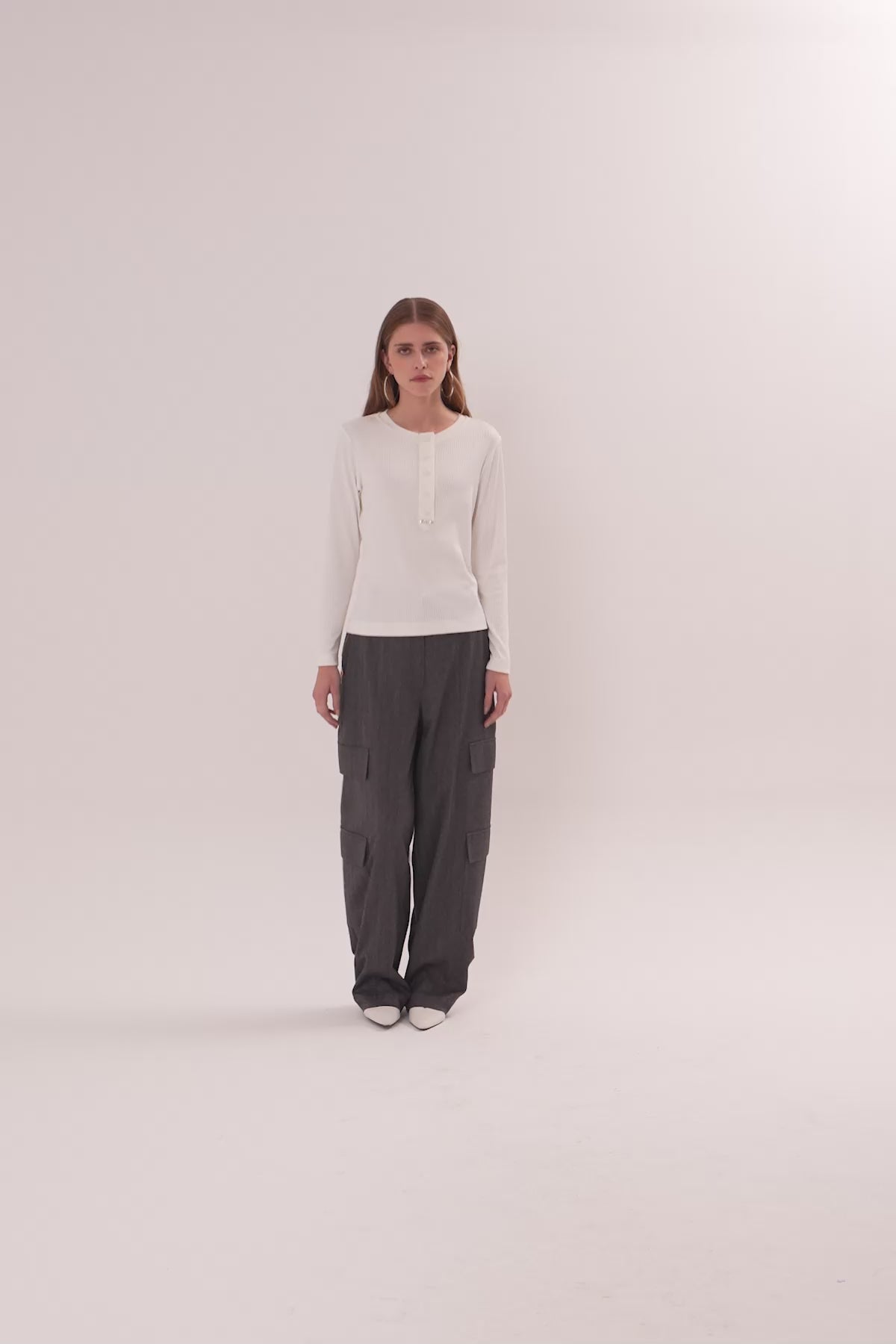 Çıtçıt Kapamalı Ucu Yuvalı İşlemeli Uzun Kollu Bluz