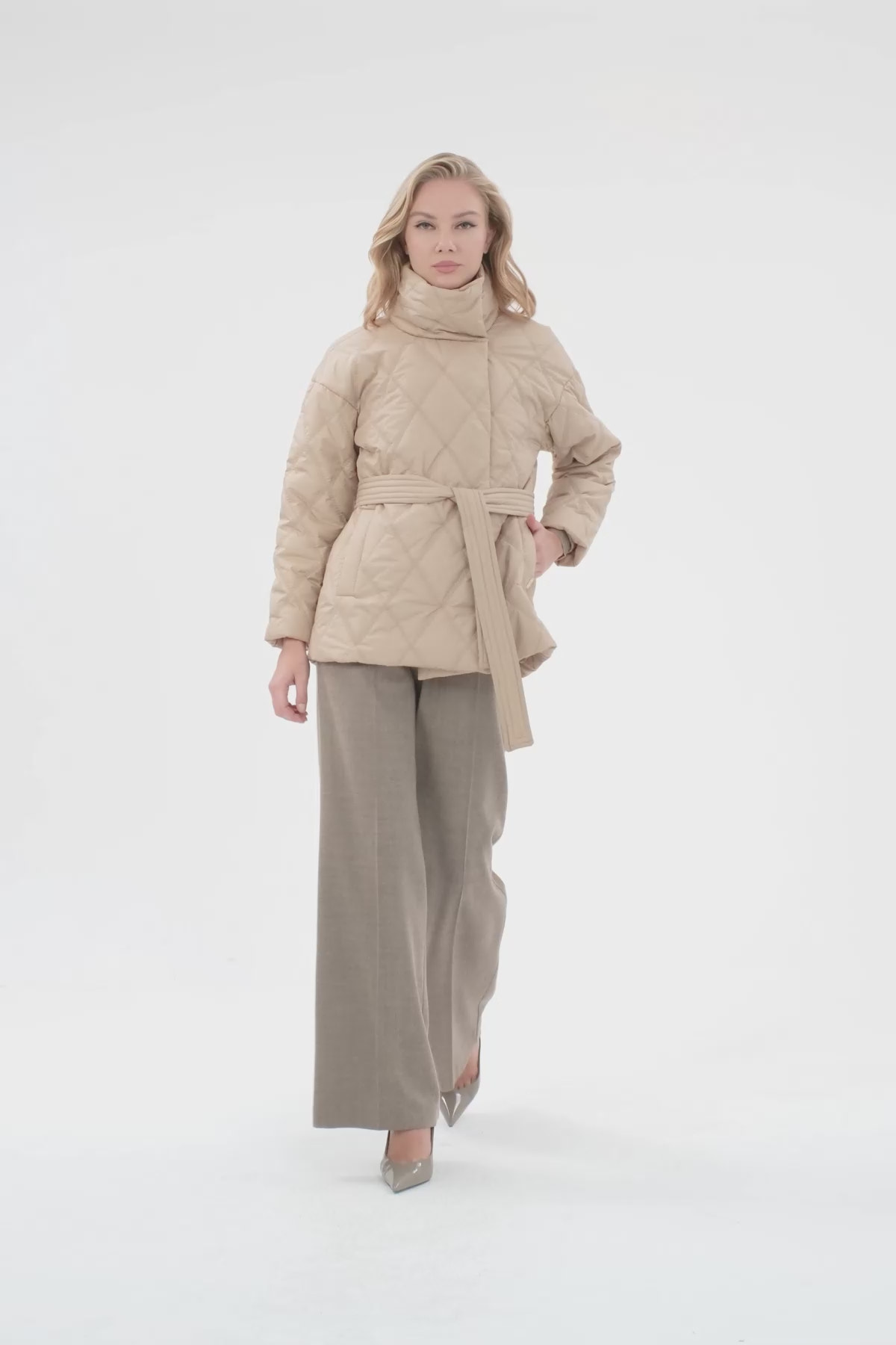 Çıtçıtlı Seyyar Kuşaklı Kapitone Mont