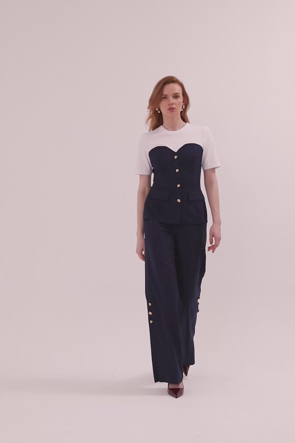 Çizgili Yarım Kol Bluz Ve Pantolon Takım