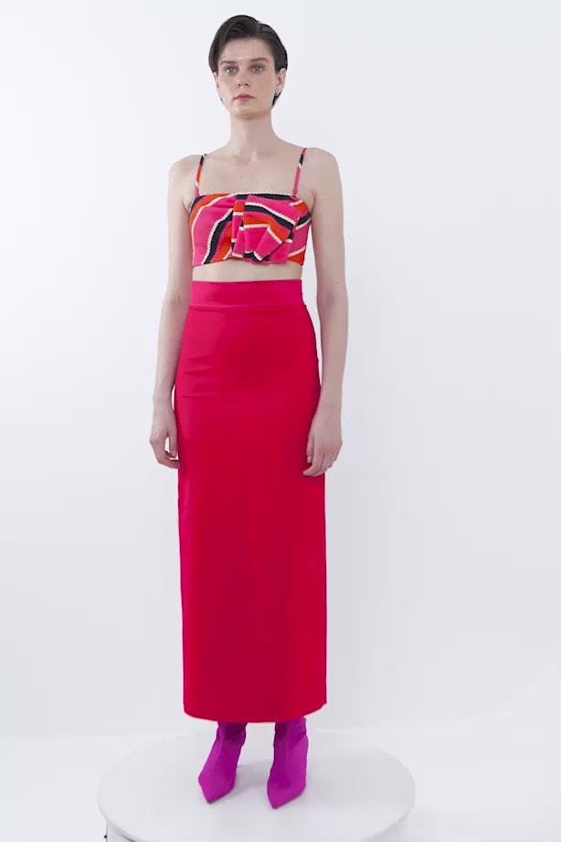 Çoban Dikiş Detaylı Askılı Asimetrik Crop Bluz