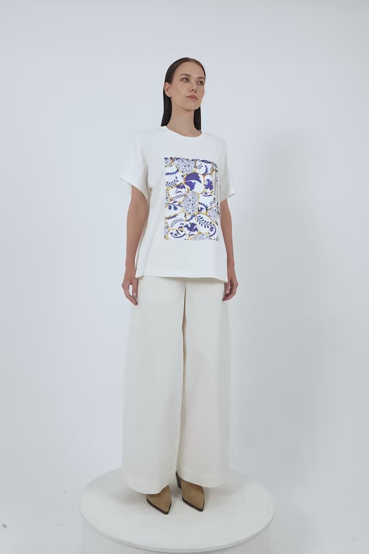 Desen Detaylı Kordon Süslemeli Basic Tişört