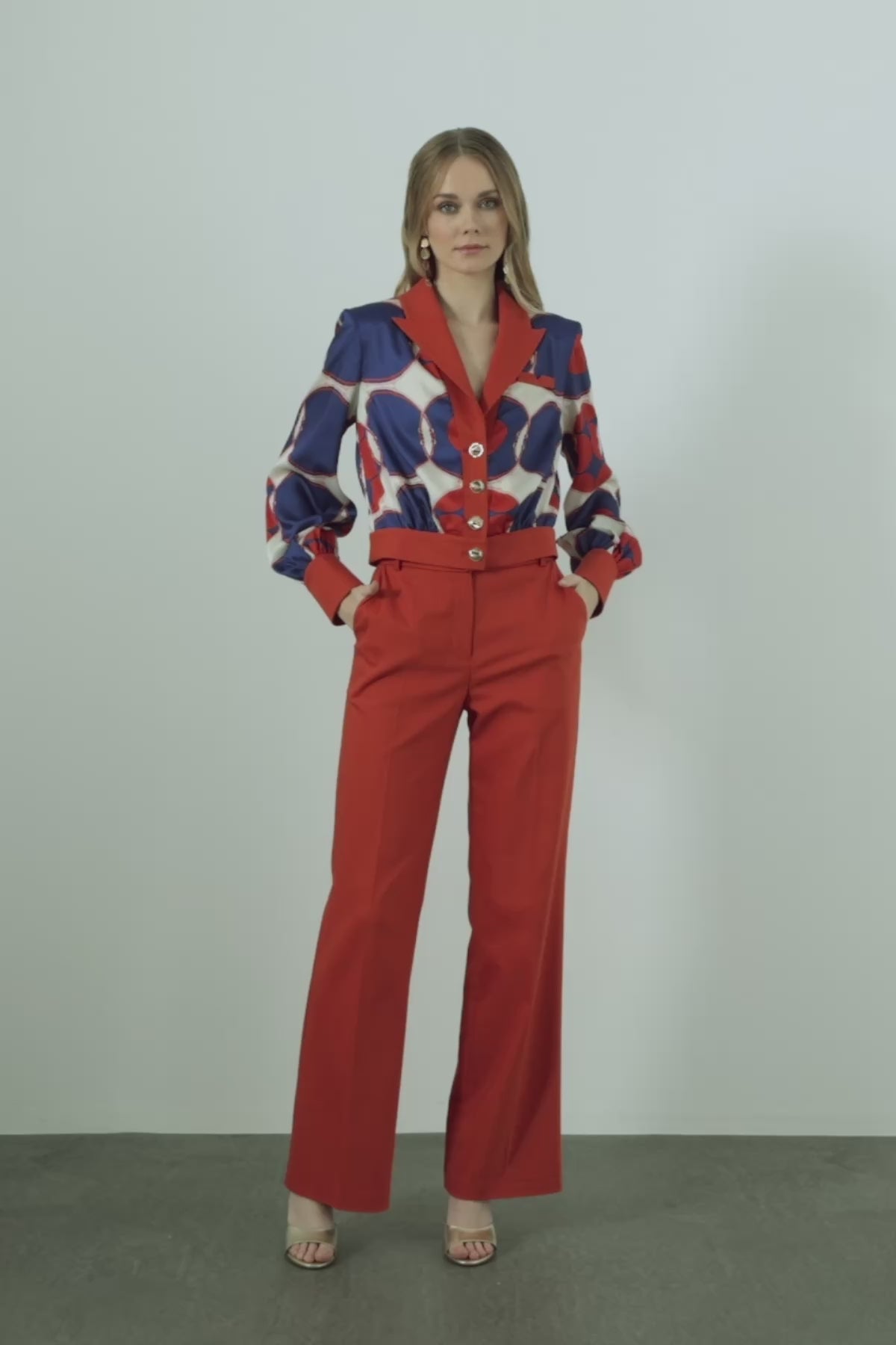 Desenli Ceket Ve Bol Paça Pantolonlu Takım