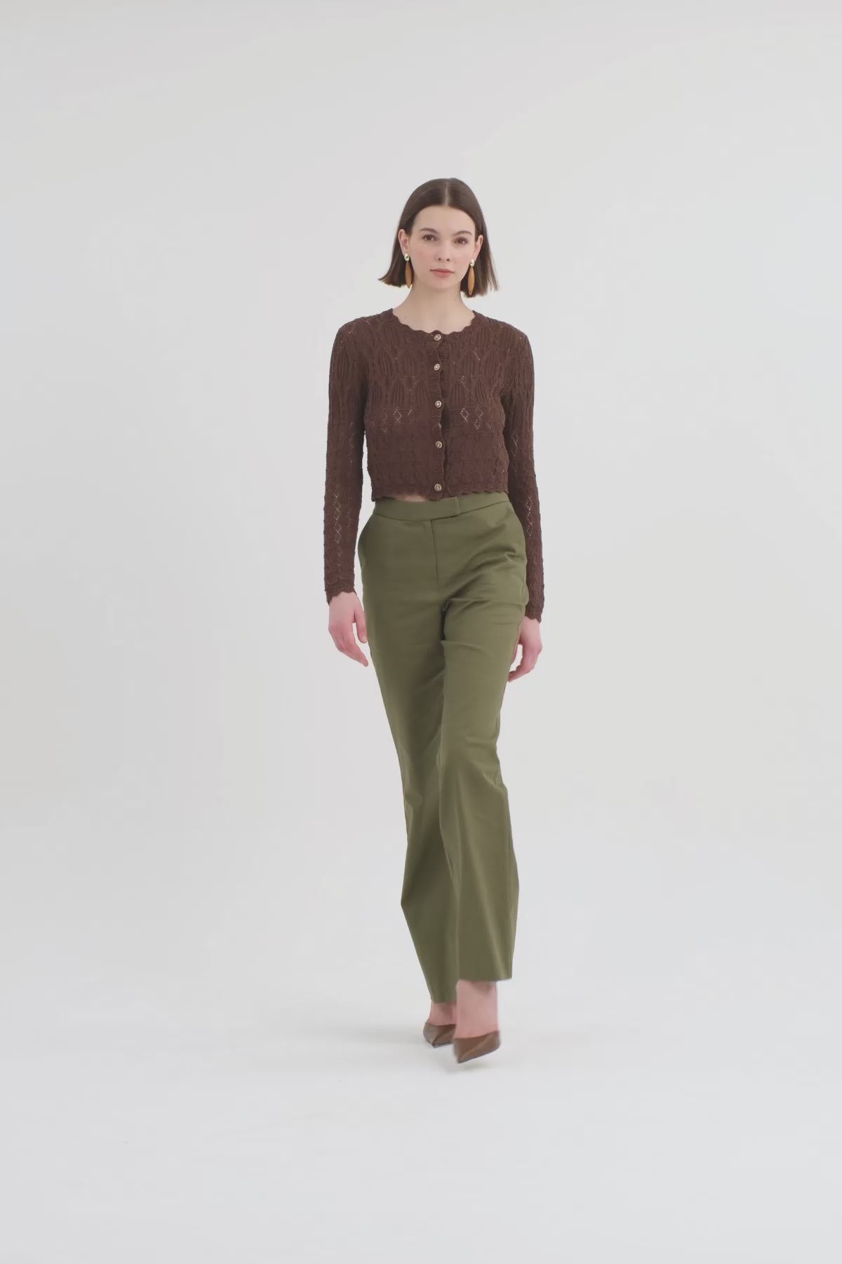 Desenli Düğmeli Kahverengi Triko