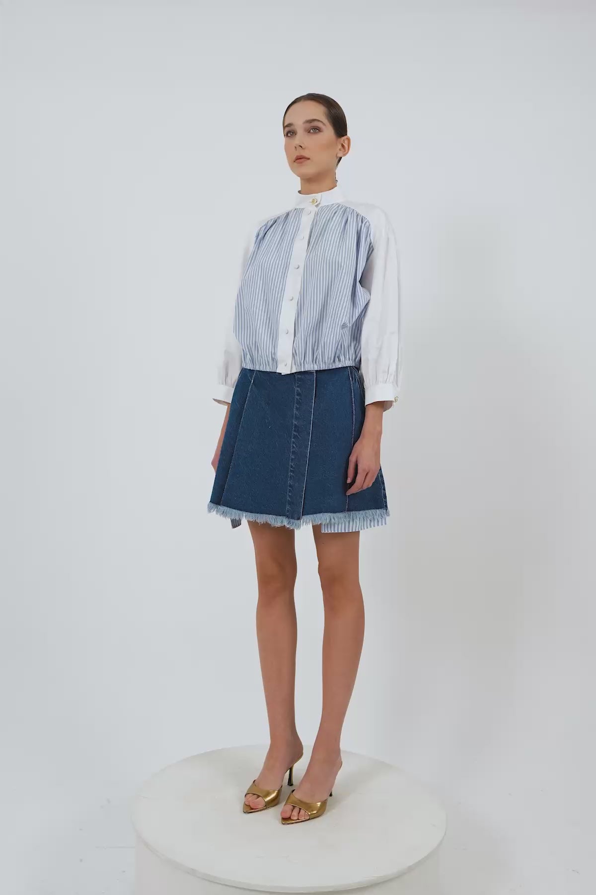 Düğme Detaylı Dik Yaka Poplin Gömlek