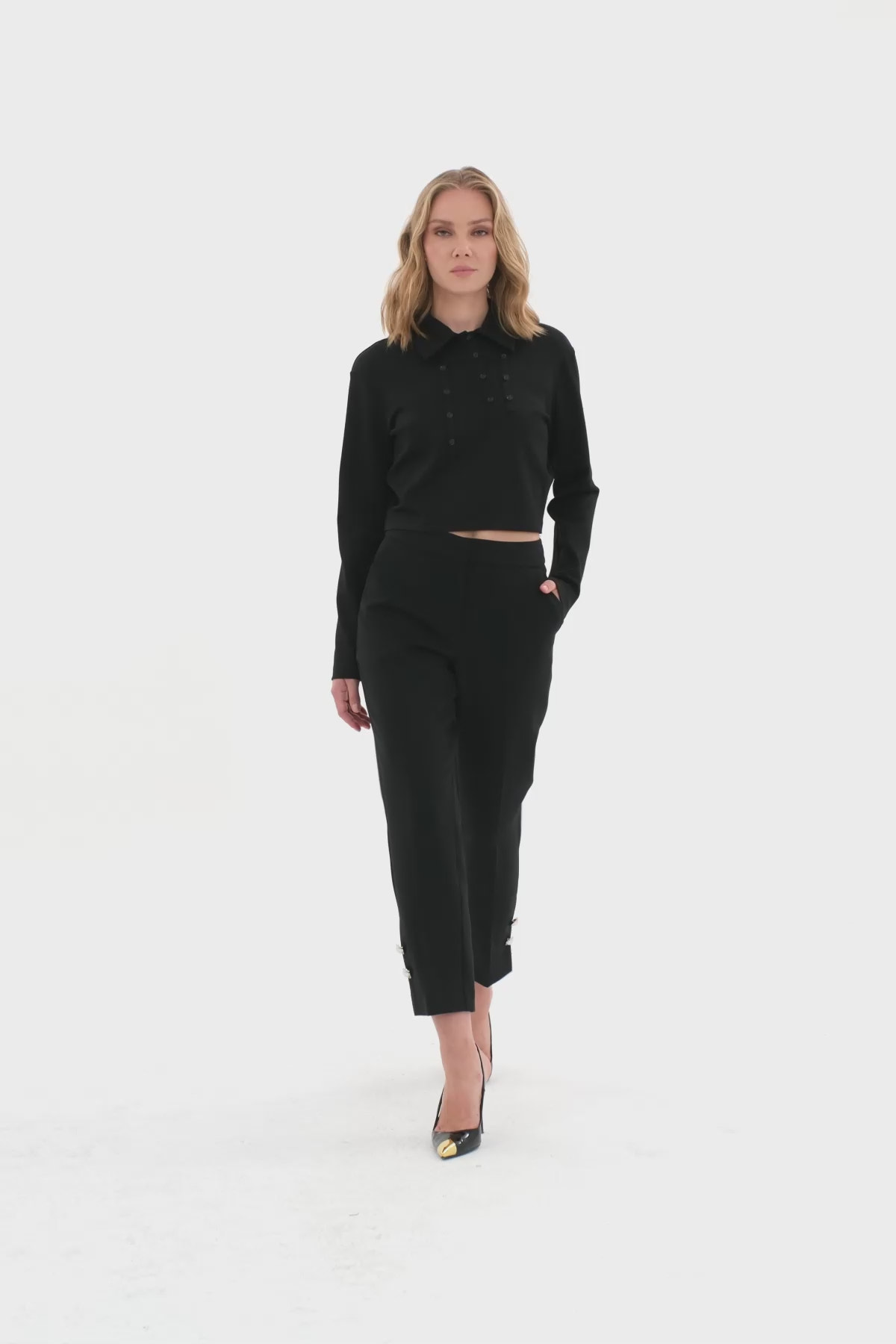 Düğme Detaylı Yüksek Bel Havuç Pantolon