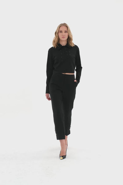 Düğme Detaylı Yüksek Bel Palazzo Pantolon