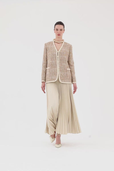 Düğme Kapamalı Ceket Ve Piliseli Etek Takım