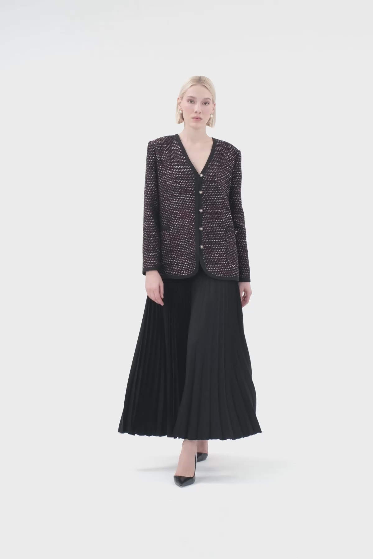 Düğme Kapamalı Ceket Ve Piliseli Etek Takım