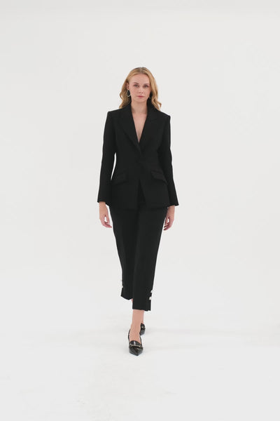 Düğmeli Kemerli Kadın Ceket