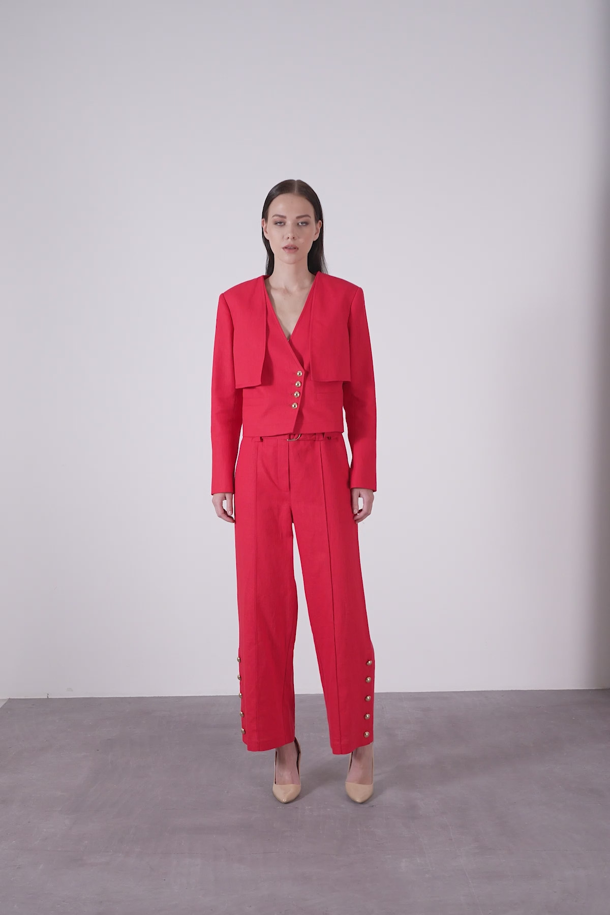 Düğmeli Kutu Form Keten Ceket