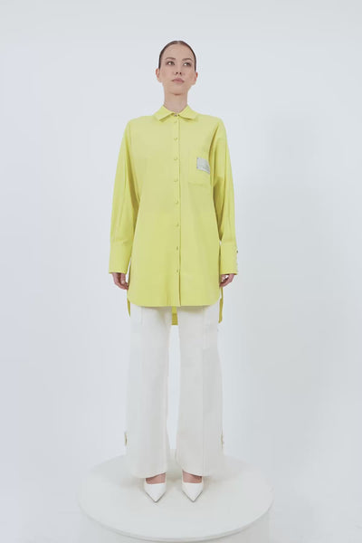 Etiket Detaylı Uzun Gömlek