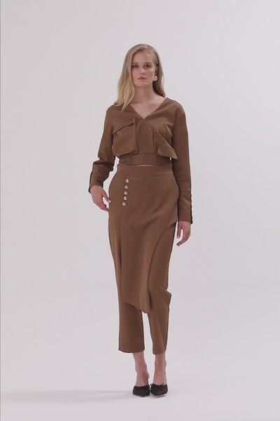 Fermuarlı Uzun Kollu Düğme Detaylı Crop Ceket