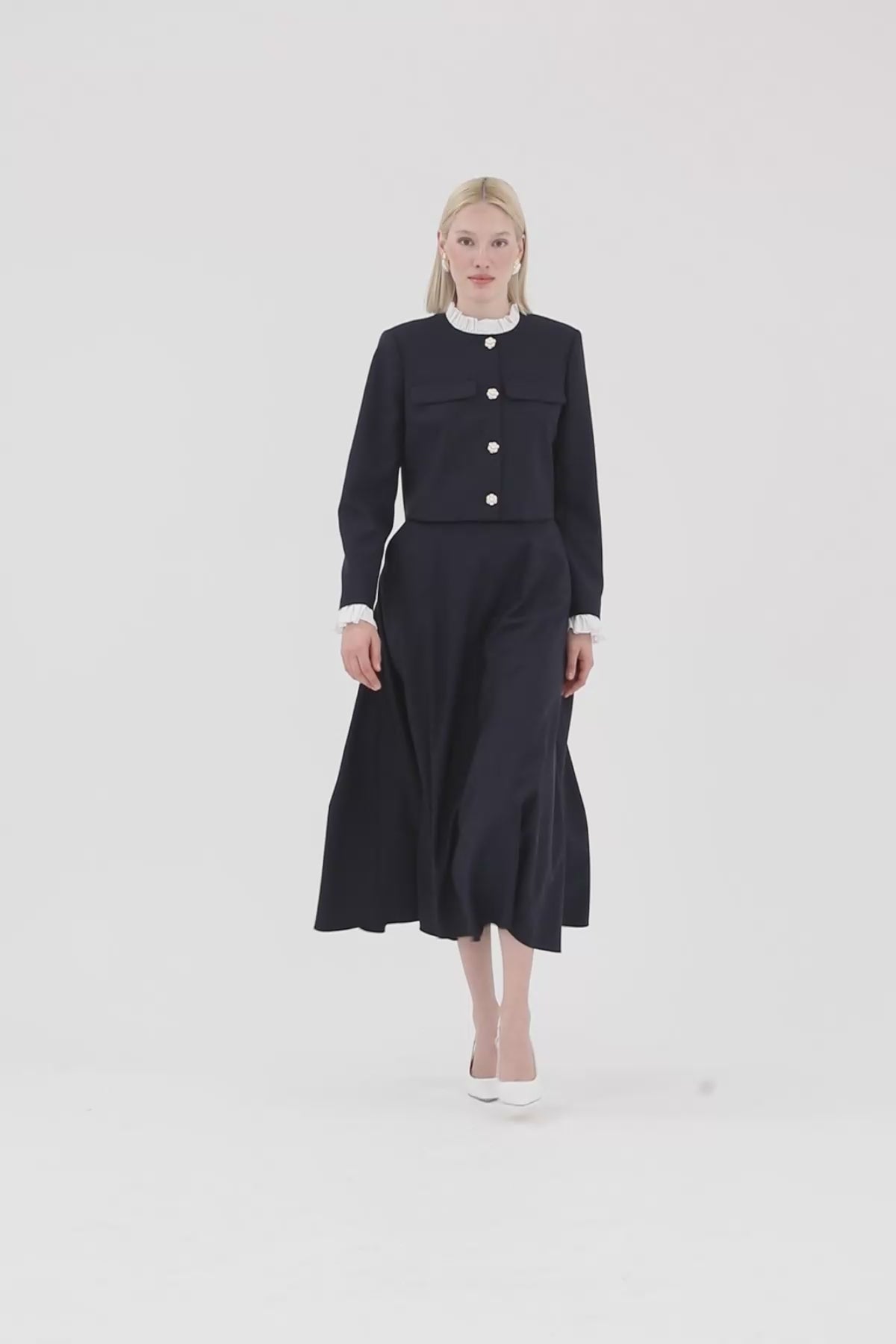 Fırfır Detaylı Ceket Ve Pileli Etekli Takım