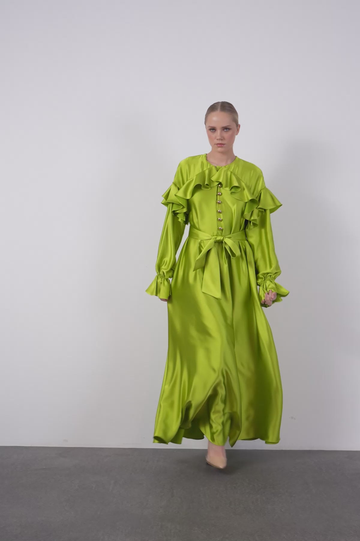 Fırfır Detaylı Uzun Elbise