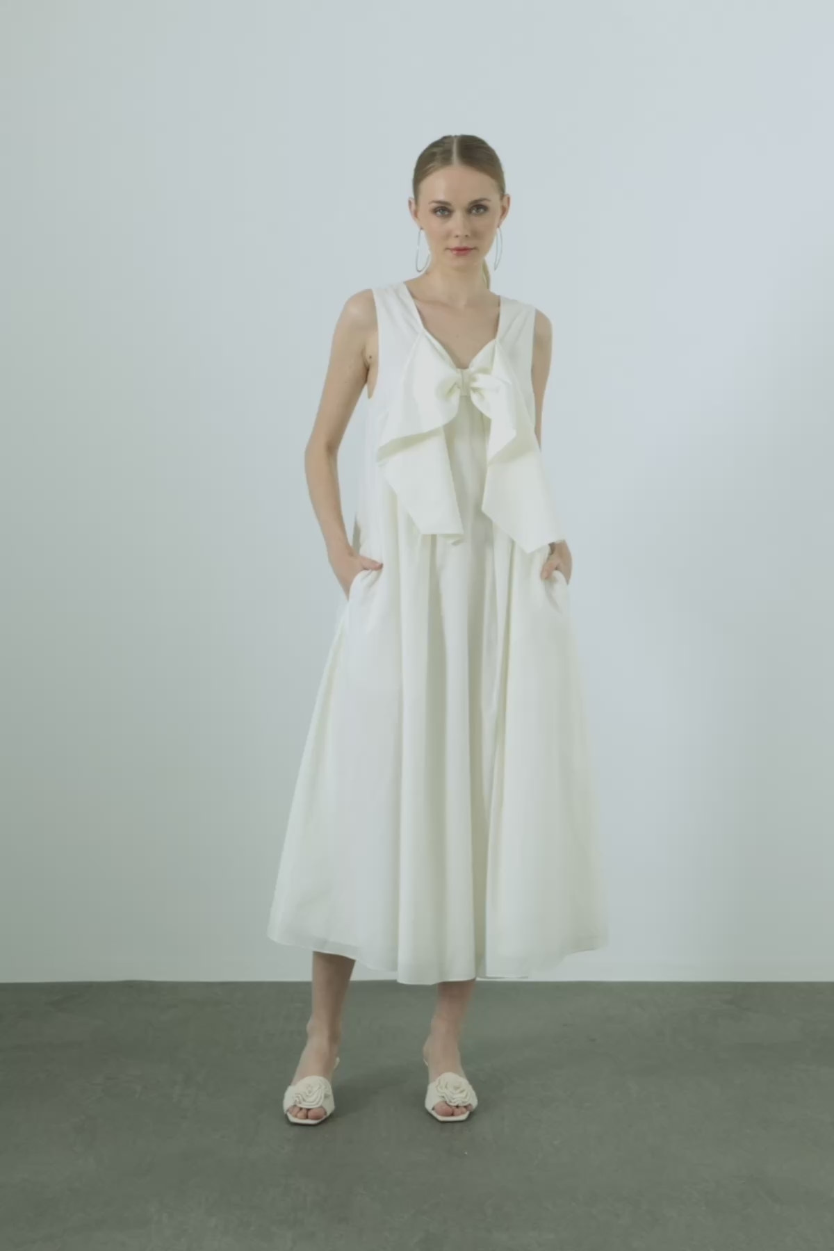Fiyonk Detaylı Astarlı Maxi Elbise