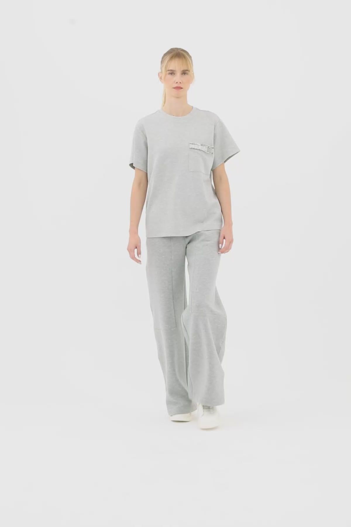 Kısa Kollu Cep Üzeri Boncuk İşlemeli Bluz