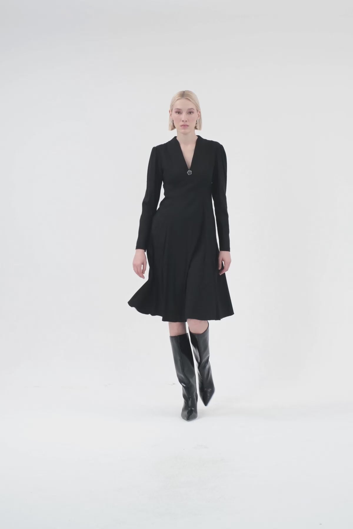 Göğüs Kup Detaylı Dekoratif Düğmeli Midi Elbise