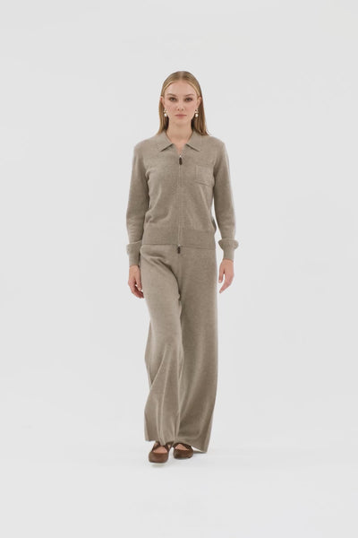 Gömlek Yaka Fermuarlı Uzun Kollu Hırka