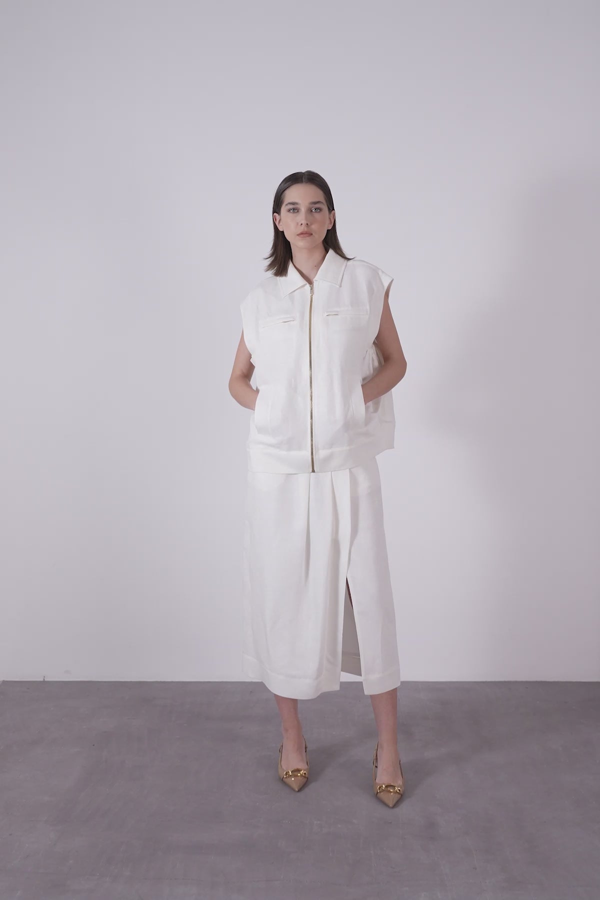 Gömlek Yakalı Sıfır Kol Fermuarlı Yelek