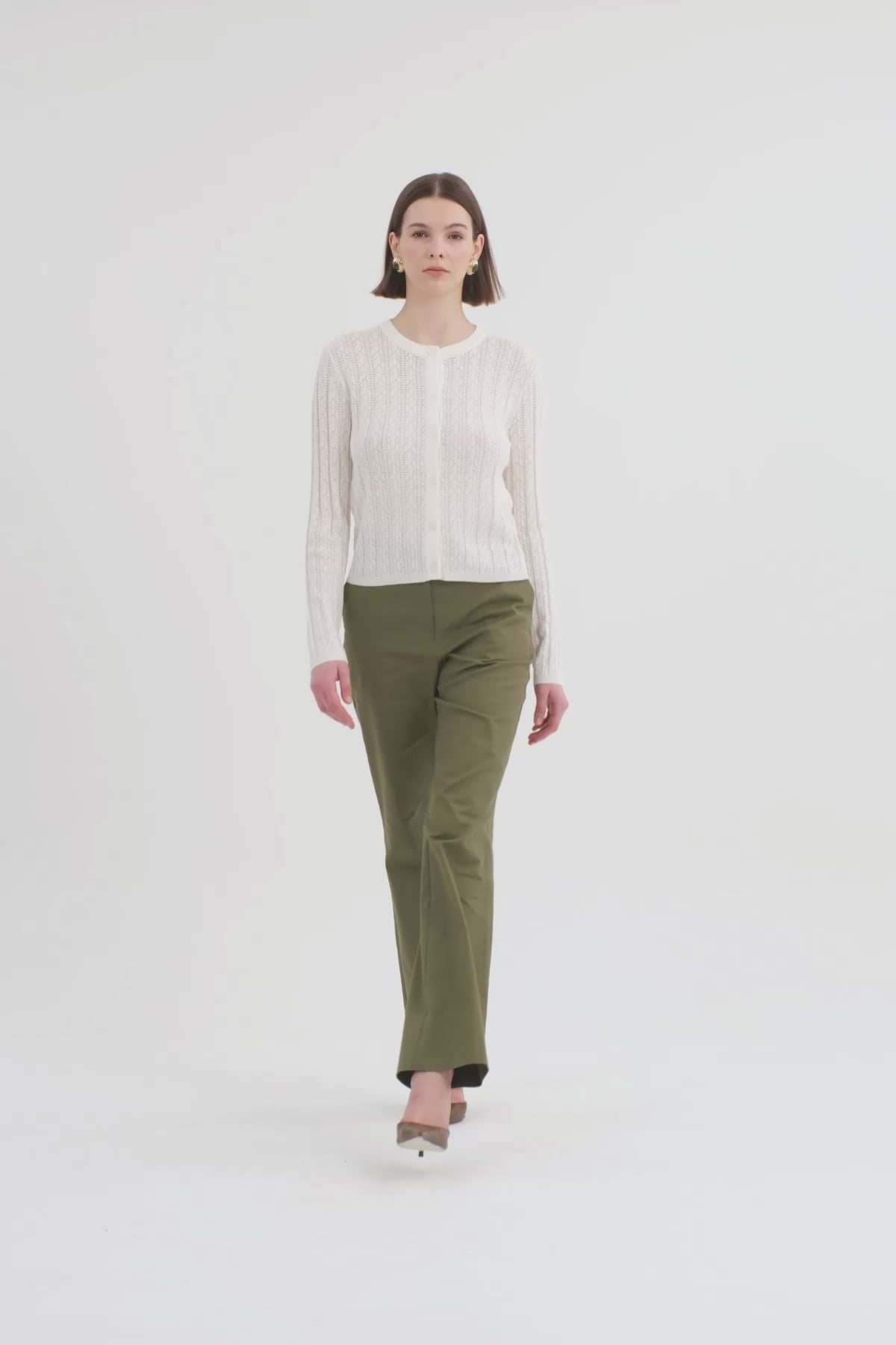İpek Karışımlı Düğmeli Beyaz Triko