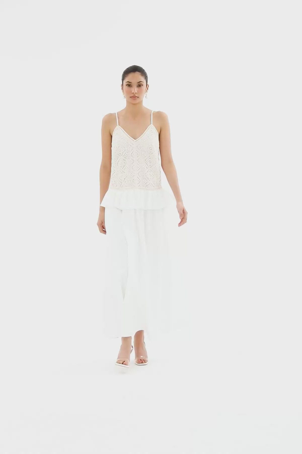 İp Askılı Pliseli Uzun Elbise
