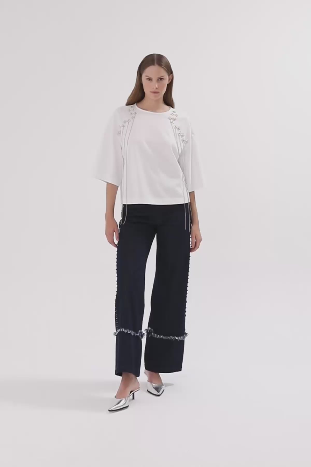 İşleme Detaylı Kısa Kollu Pamuklu Tshirt