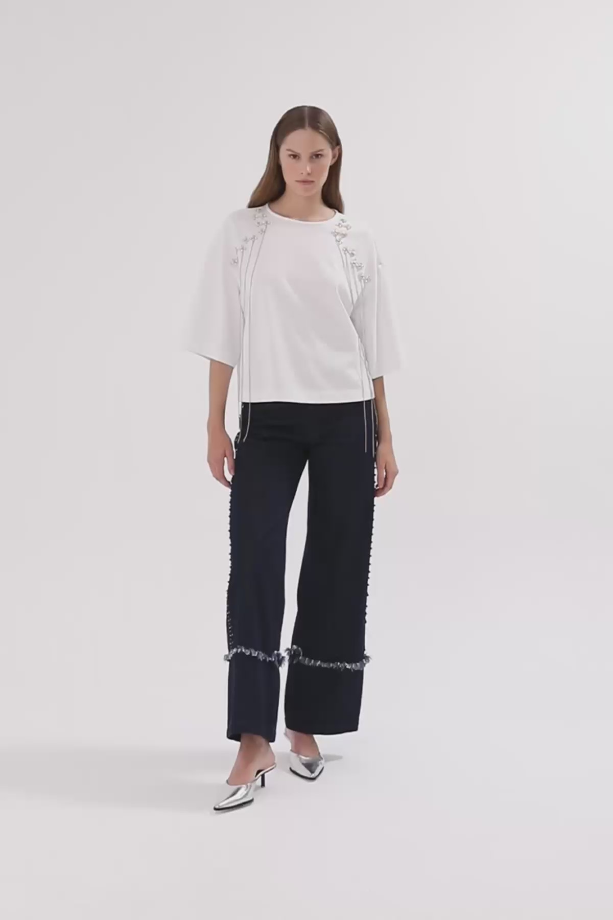 İşleme Detaylı Kısa Kollu Pamuklu T-shirt