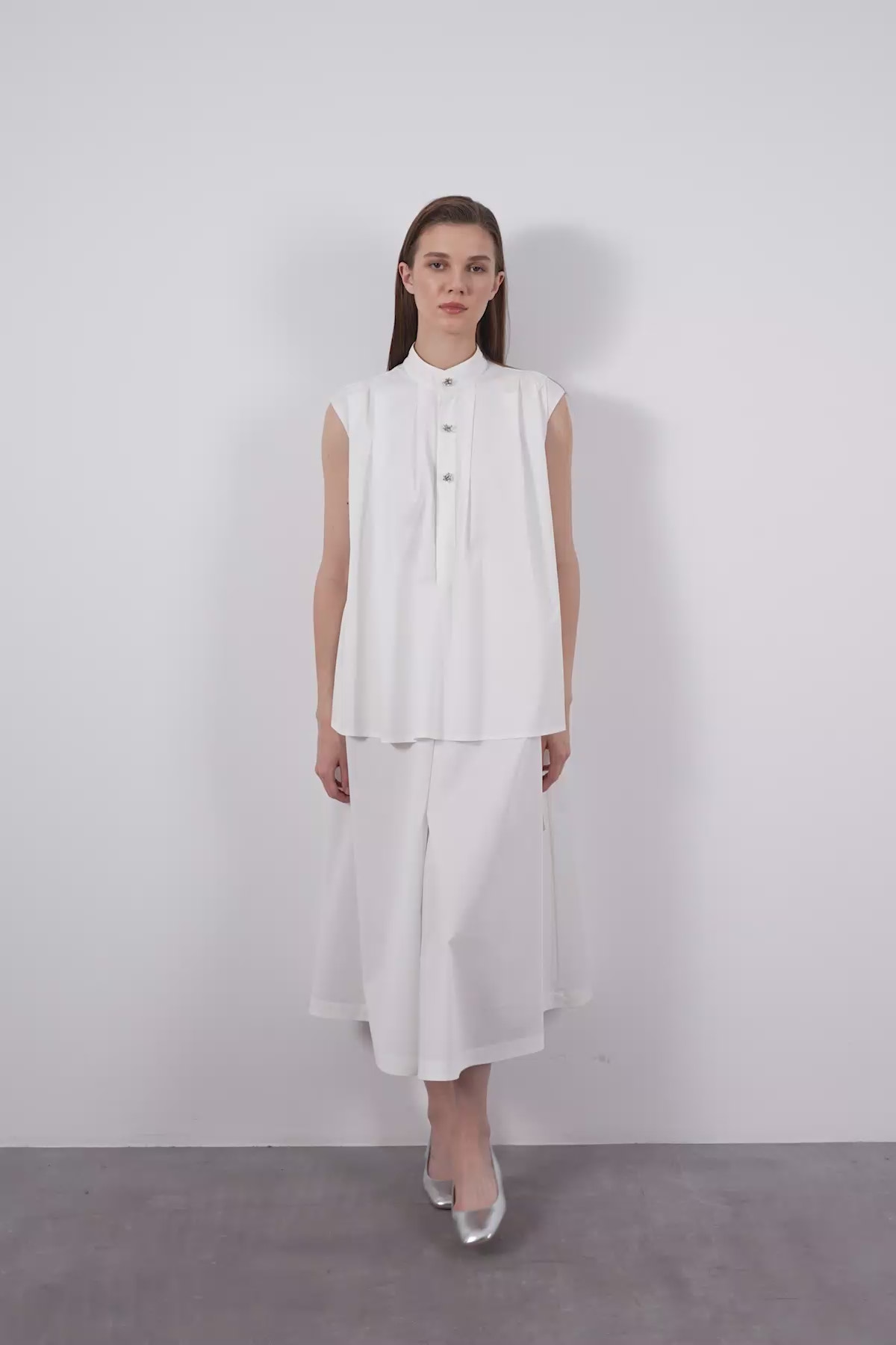 İşleme Detaylı Kolsuz Poplin Midi Elbise