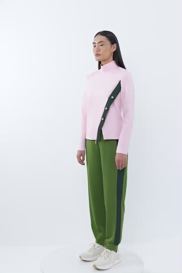 İşlemeli Düğme Detaylı Dik Yaka Scuba Bluz