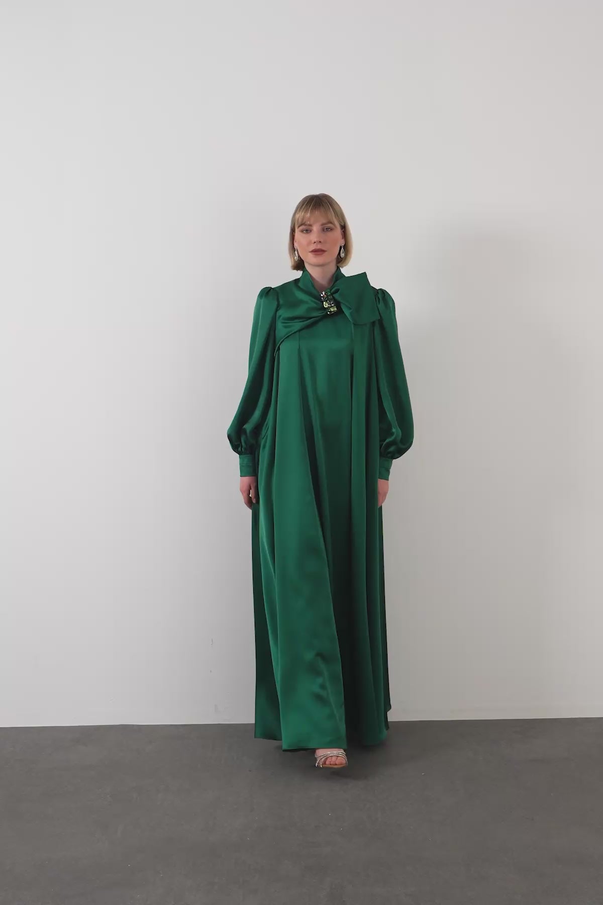 İşlemeli Fiyonk Detaylı Uzun Elbise