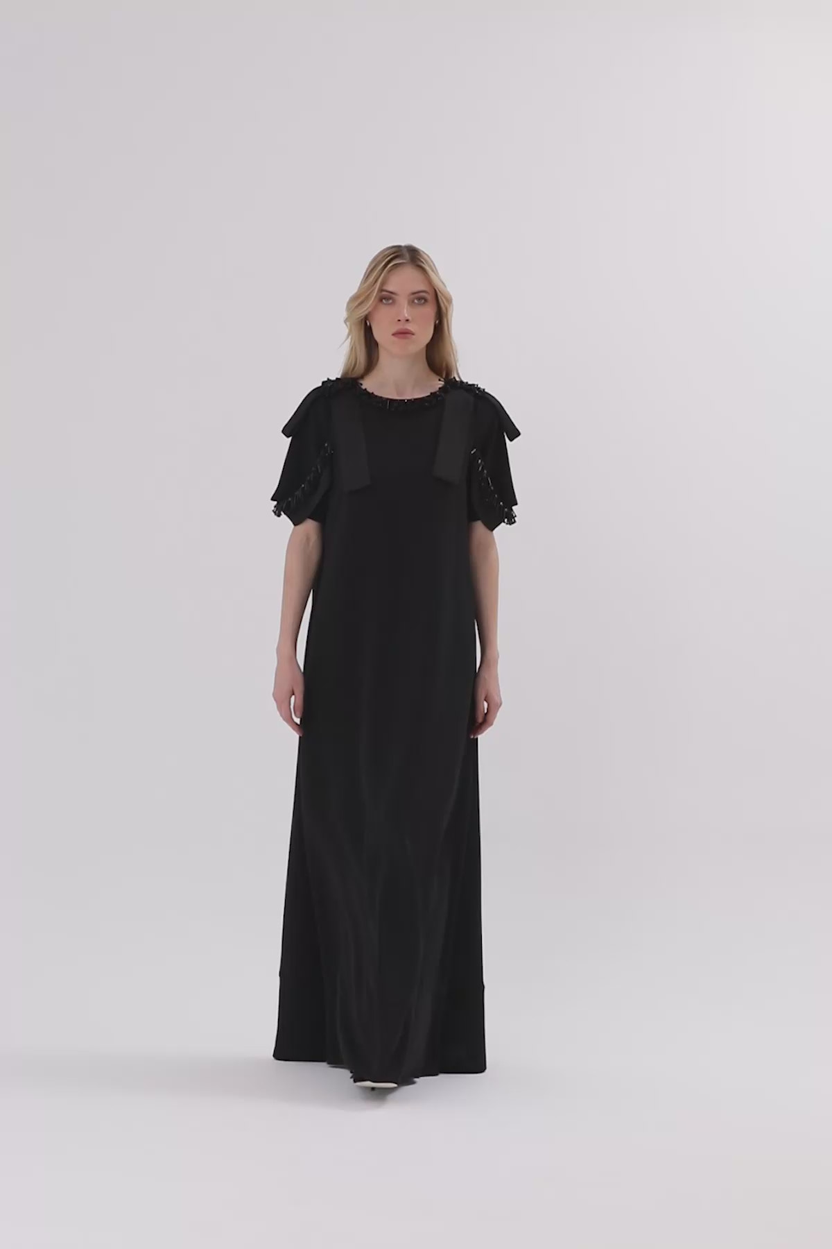 İşlemeli Uzun Elbise