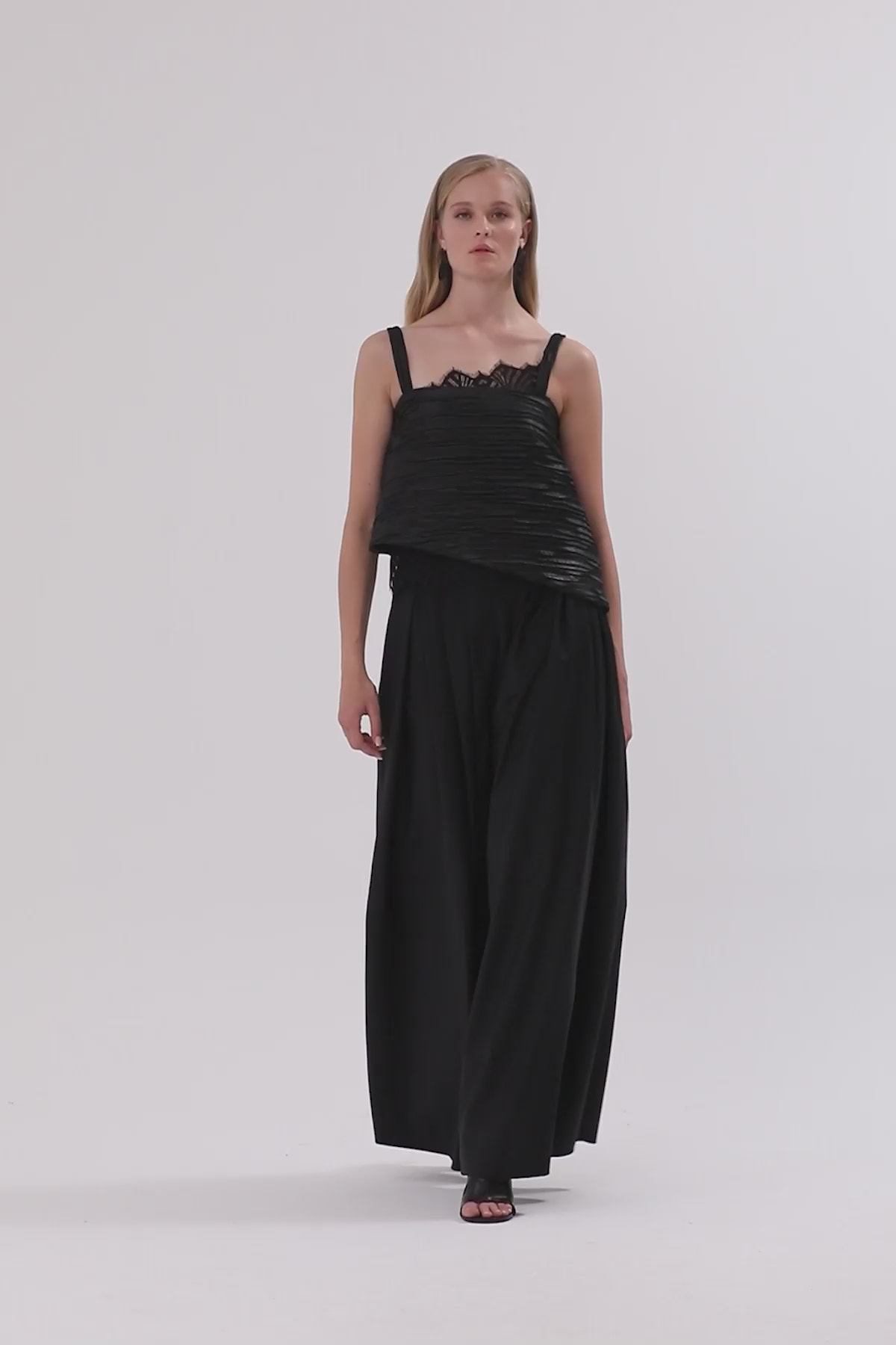 Kalın Askılı Dantel Detaylı Asimetrik Bluz