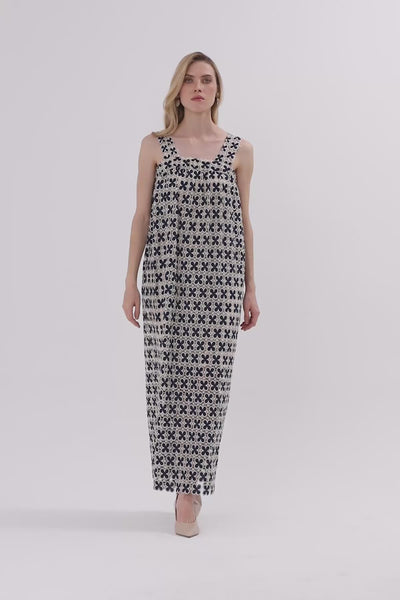 Kalın Askılı Desenli Uzun Elbise