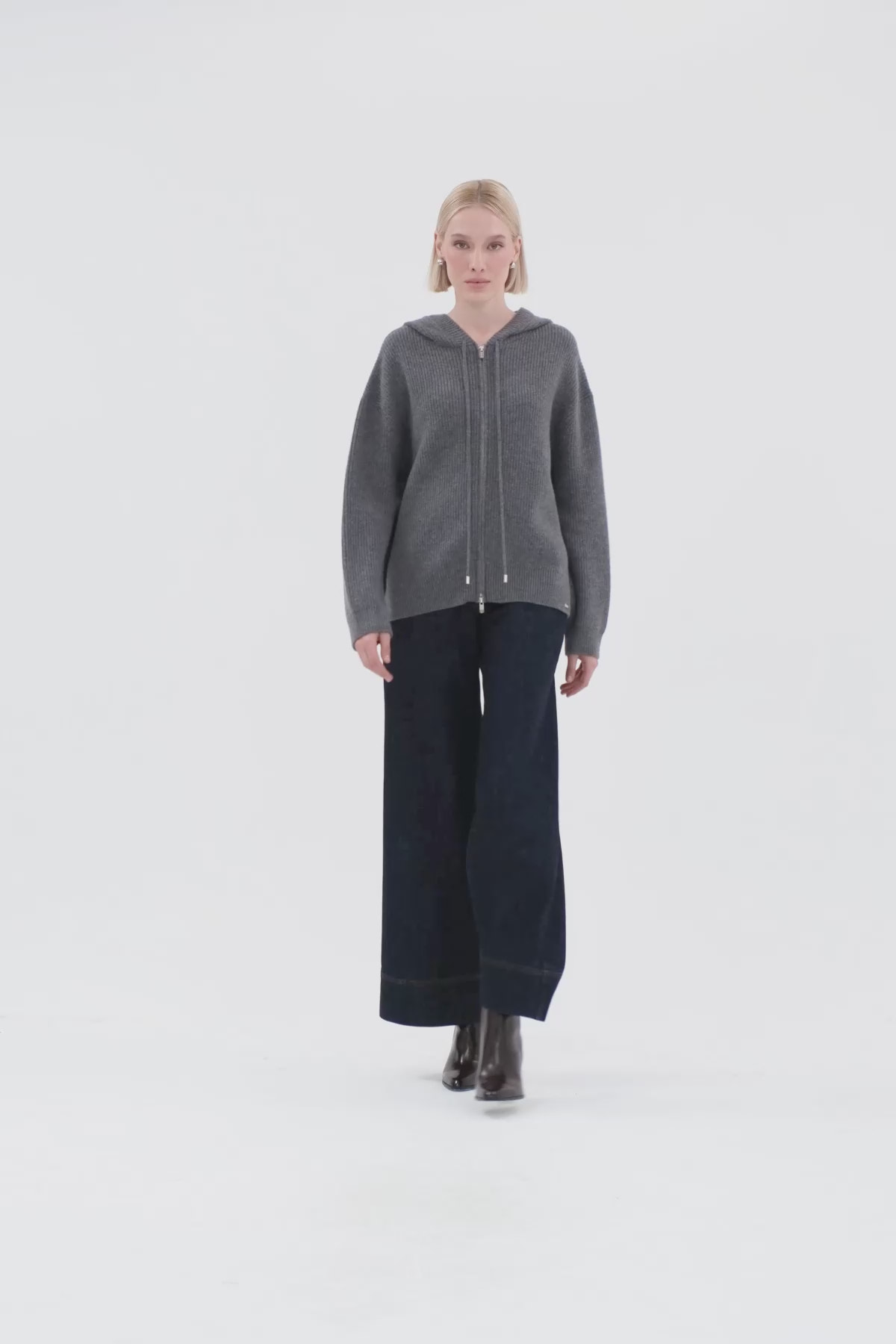 Kapüşon Yaka Fermuar Kapamalı Uzun Kollu Hırka