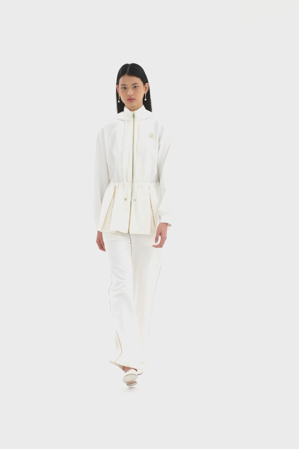Kapüşonlu Beli Büzgülü Ekru Eşofman Takımı