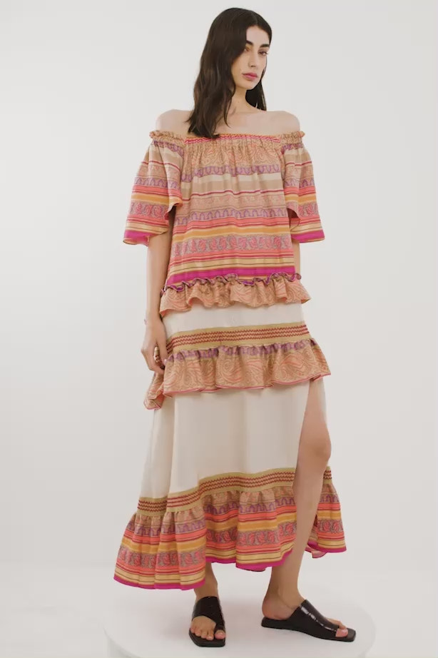 Kayık Yakalı Fırfır Detaylı Midi Elbise
