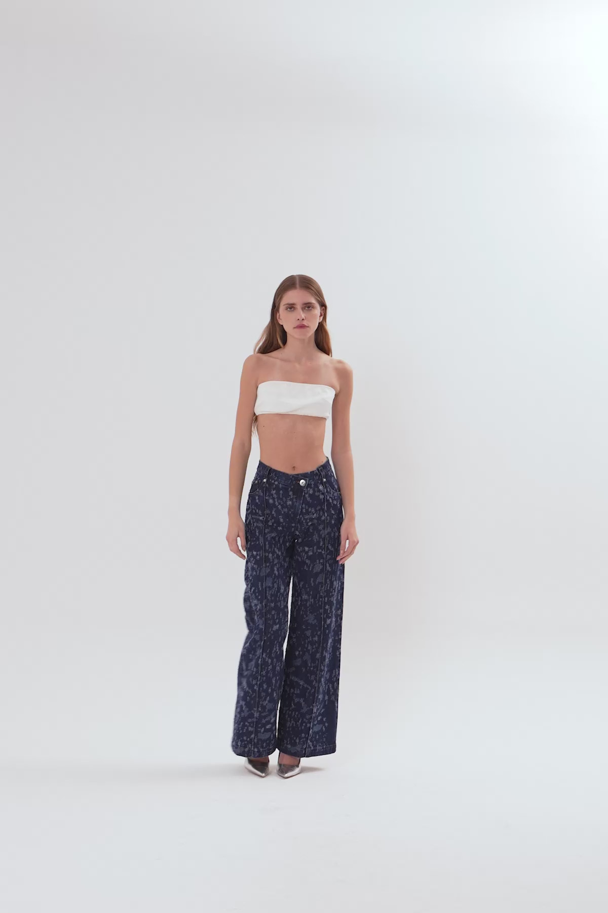 Kemer Ve Düğme Detaylı Önden Tek Pileli Geniş Paça Denim Pantolon