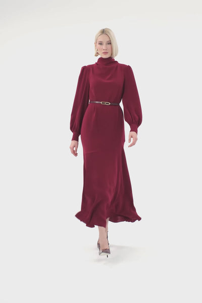 Kemerli Kolları Düğmeli Maxi Elbise
