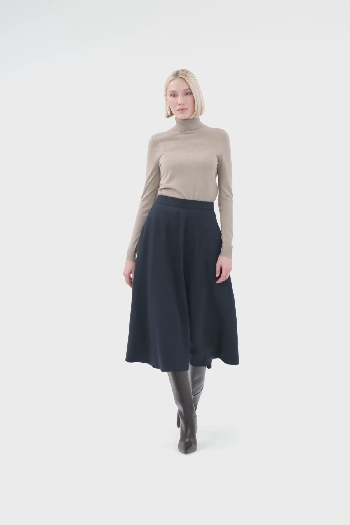 Kemerli Yüksek Bel Midi Etek