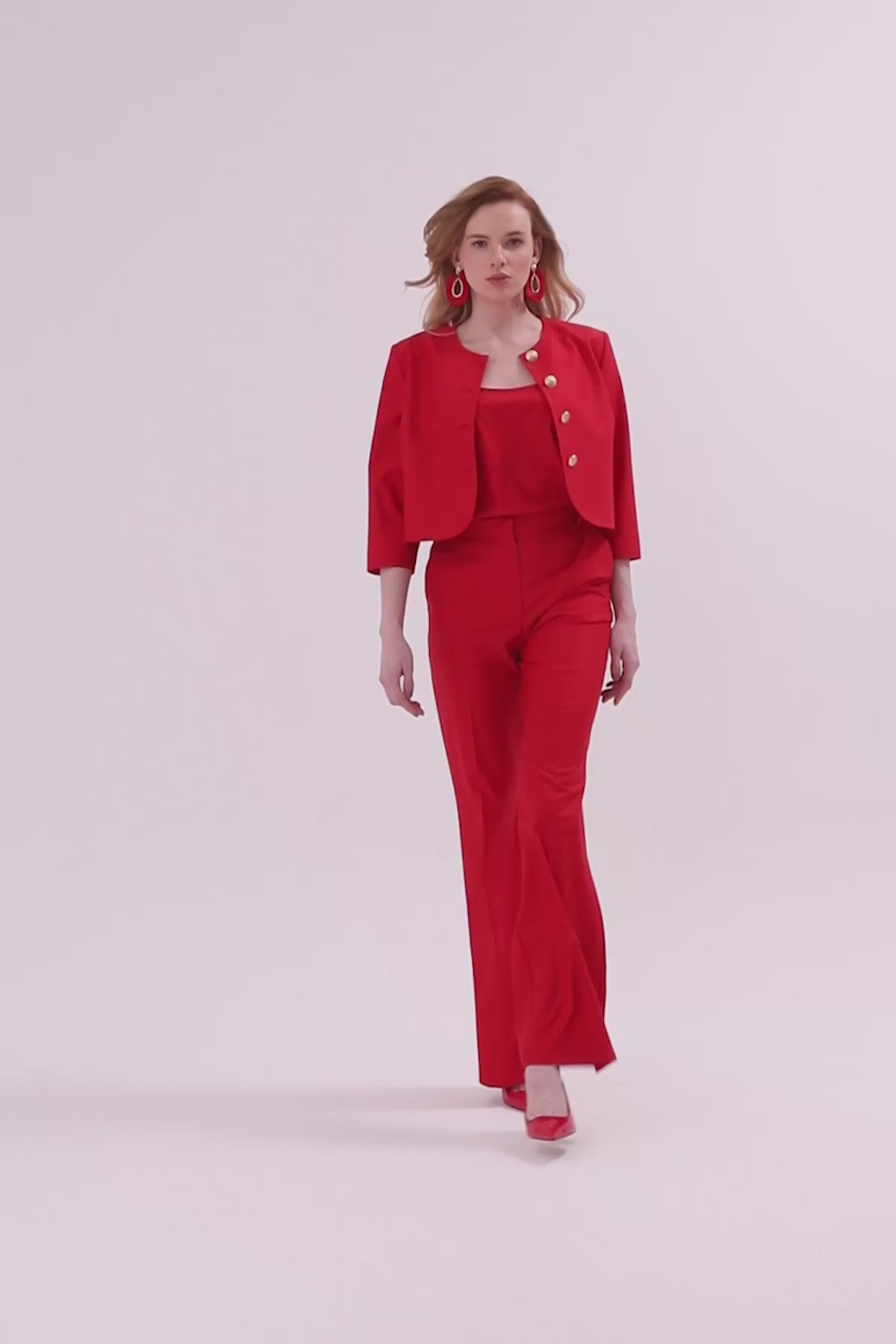 Kısa Ceket Atlet Ve Geniş Paça Pantolonlu Üçlü Takım