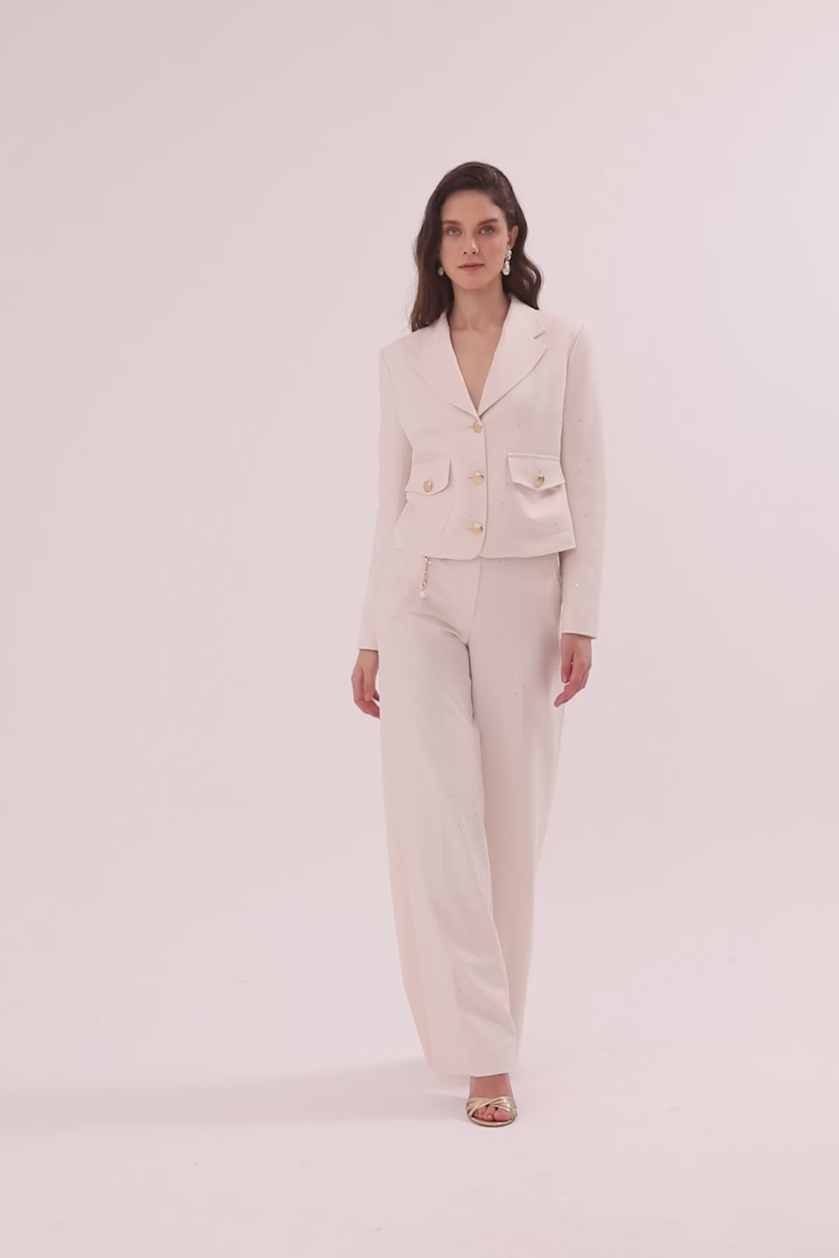 Kısa Ceket Ve Palazzo Pantolonlu Takım