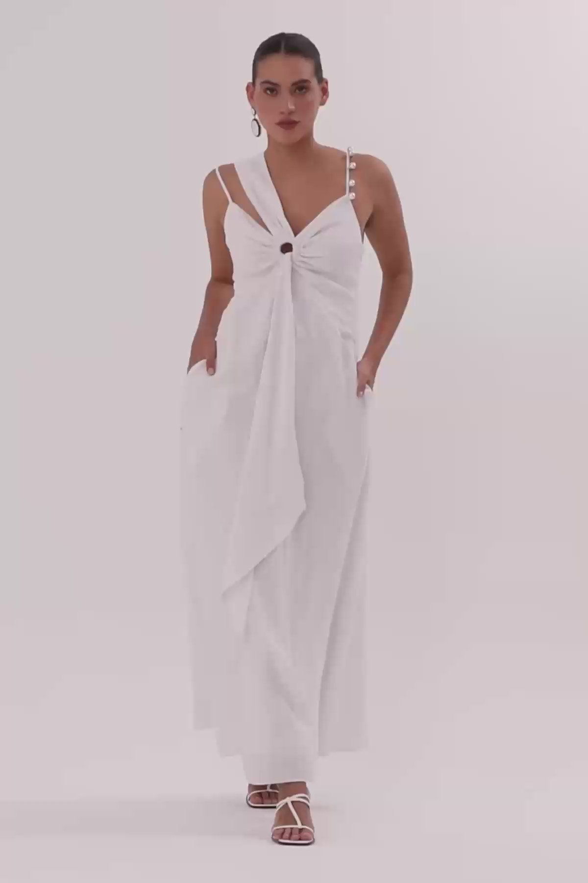 Kol Detaylı Uzun Elbise