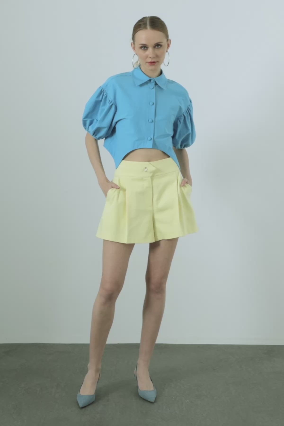 Kolları Büzgü Detaylı Crop Gömlek