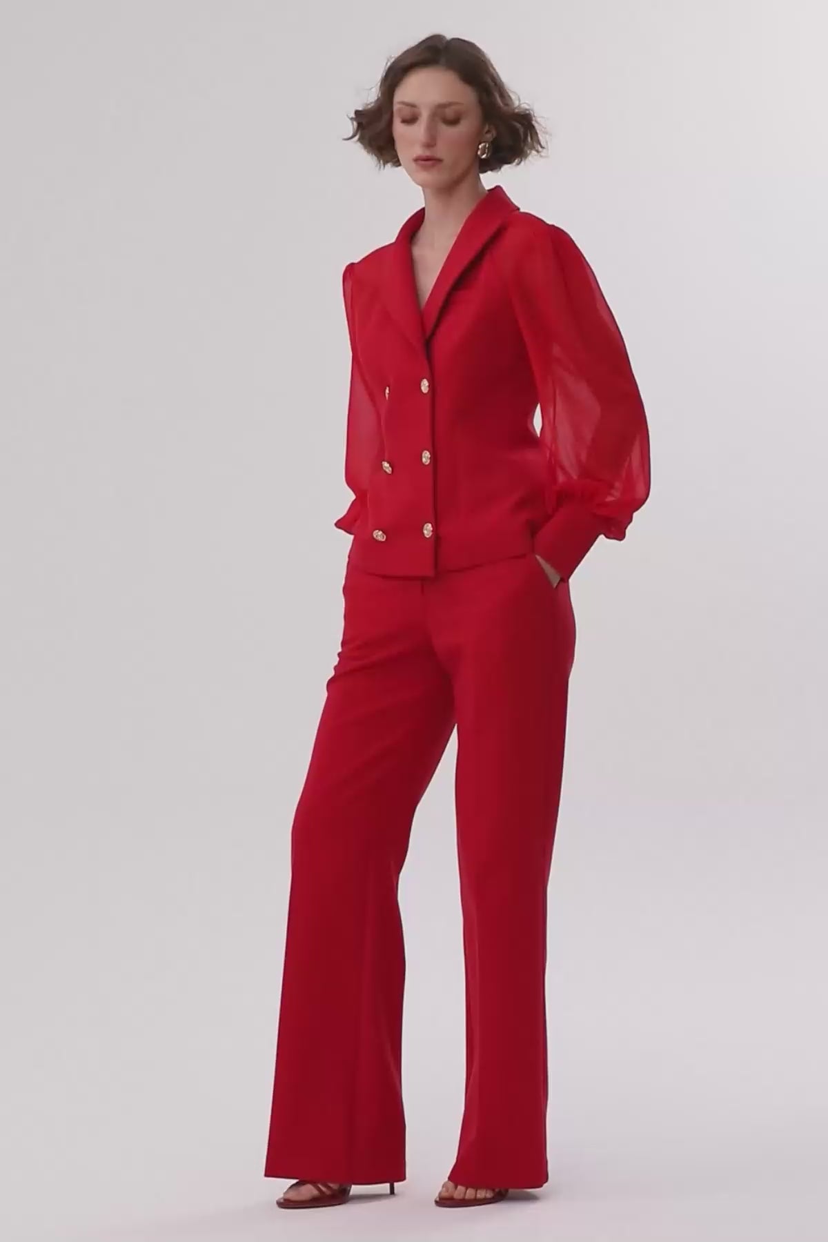 Kolları Şifon Kruvaze Kapamalı Pantolonlu Takım