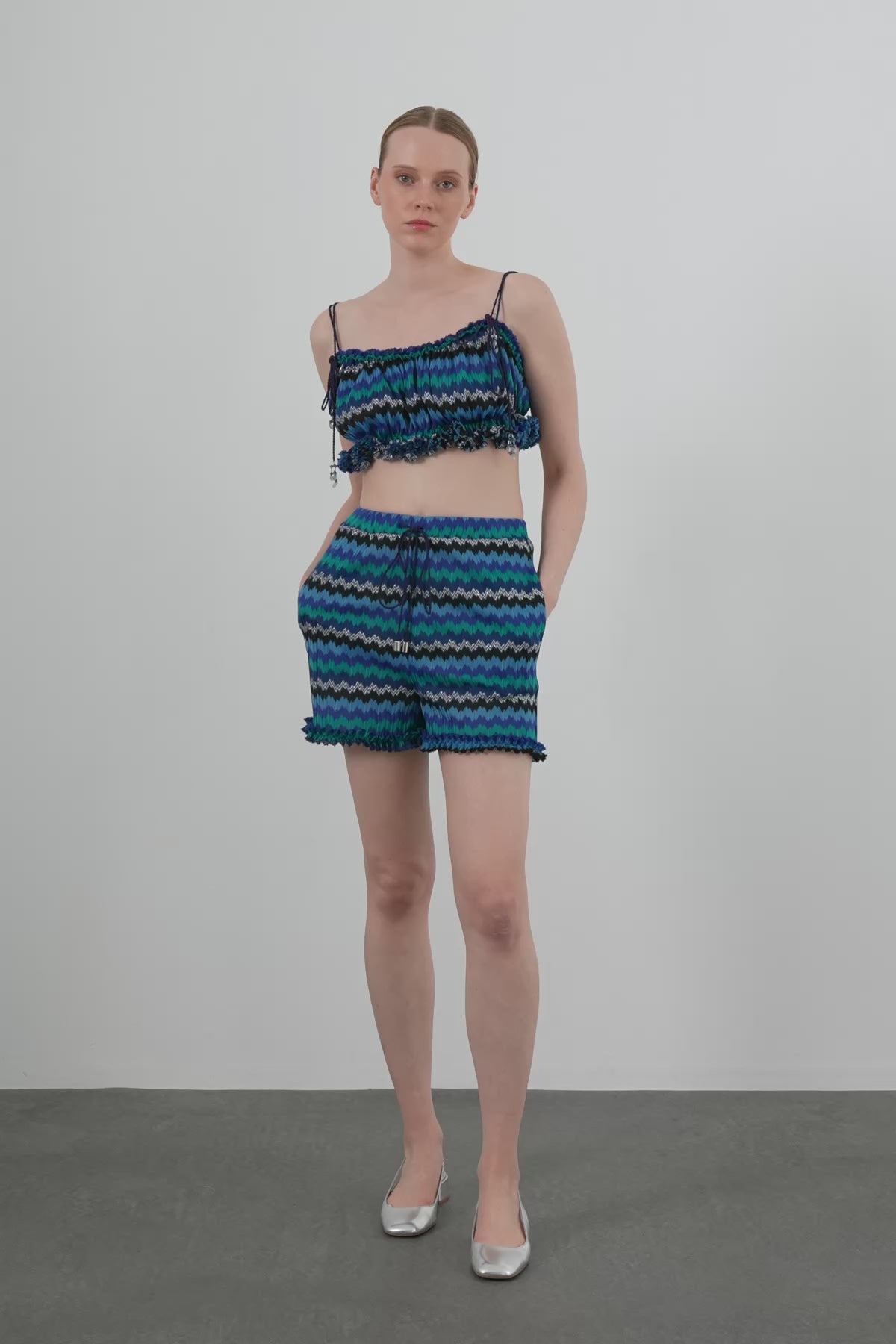 Kordon Askılı Etekucu Büzgülü Crop Bluz