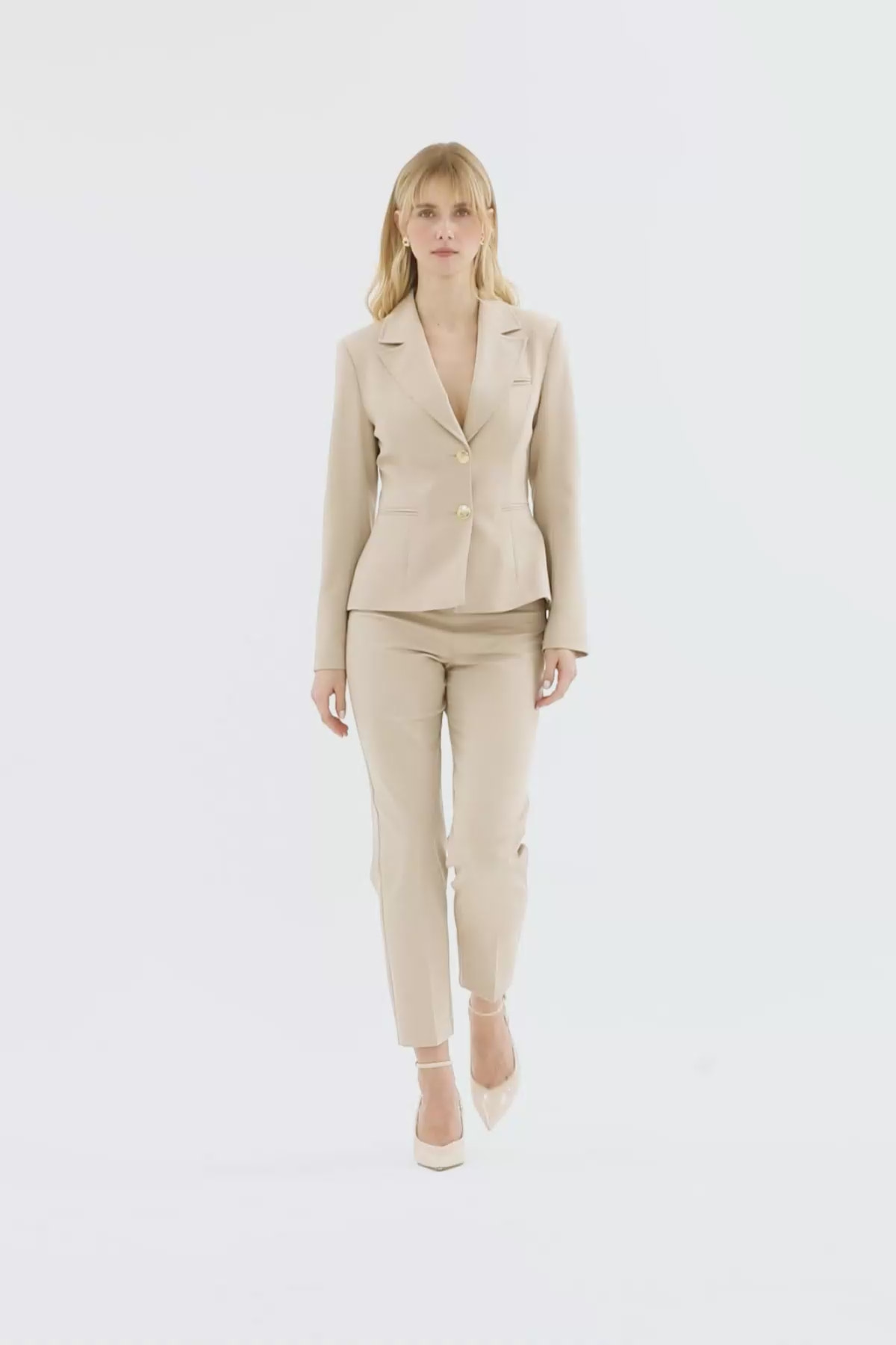 Kruvaze Ceket Ve Bilek Boy Pantolonlu Takım