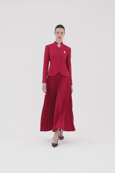 Kruvaze Kapama Ceket Ve Piliseli Etekli Takım