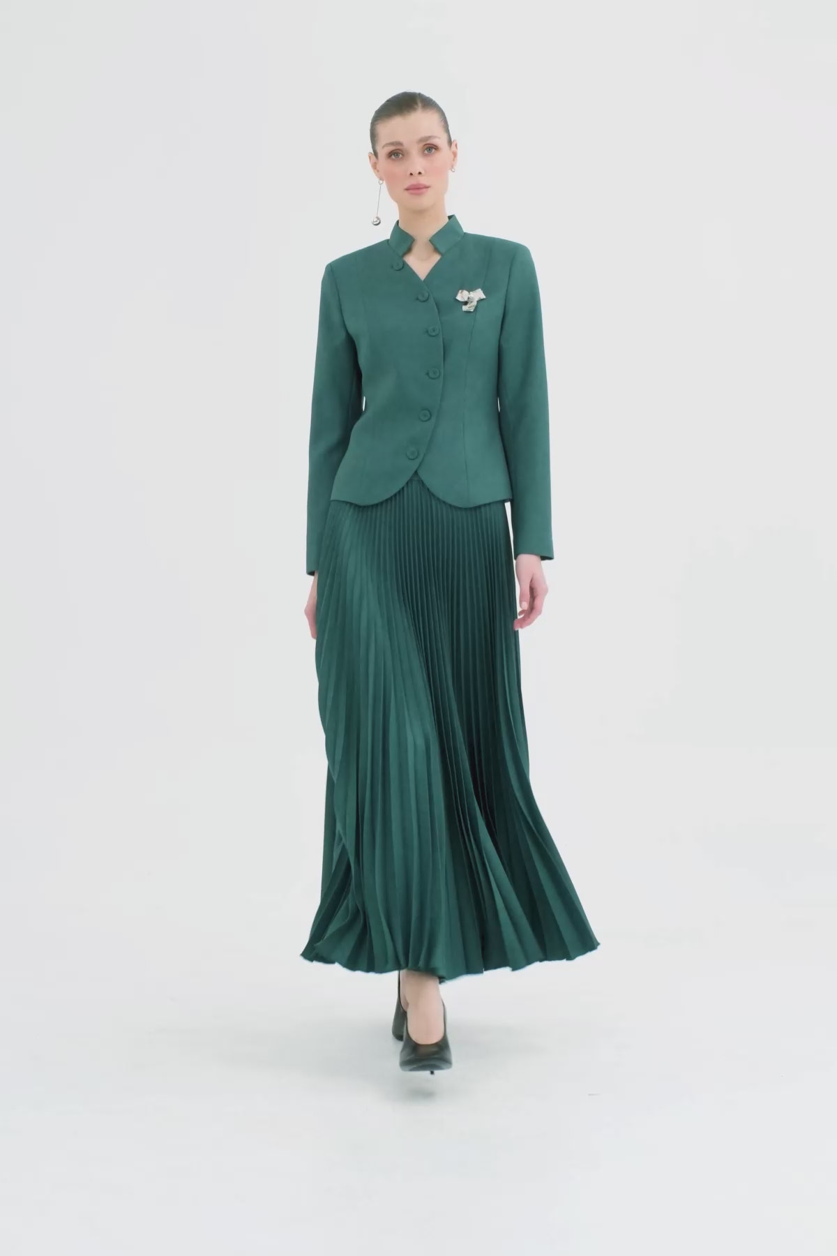 Kruvaze Kapama Ceket Ve Piliseli Etekli Takım