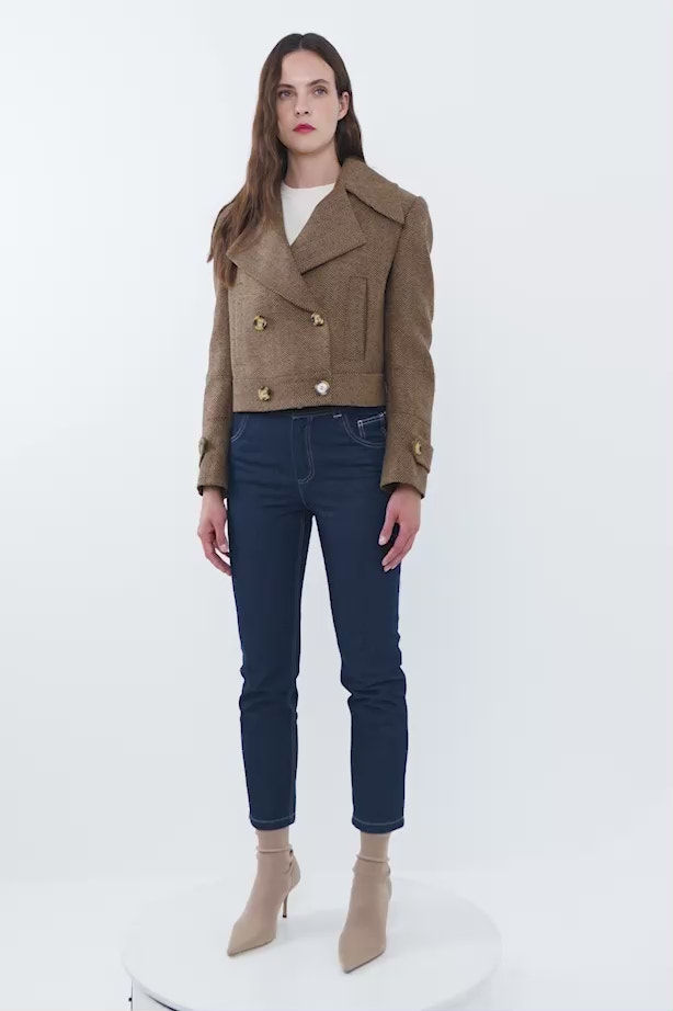 Kruvaze Kapama Kutu Form Kısa Kaşe Ceket