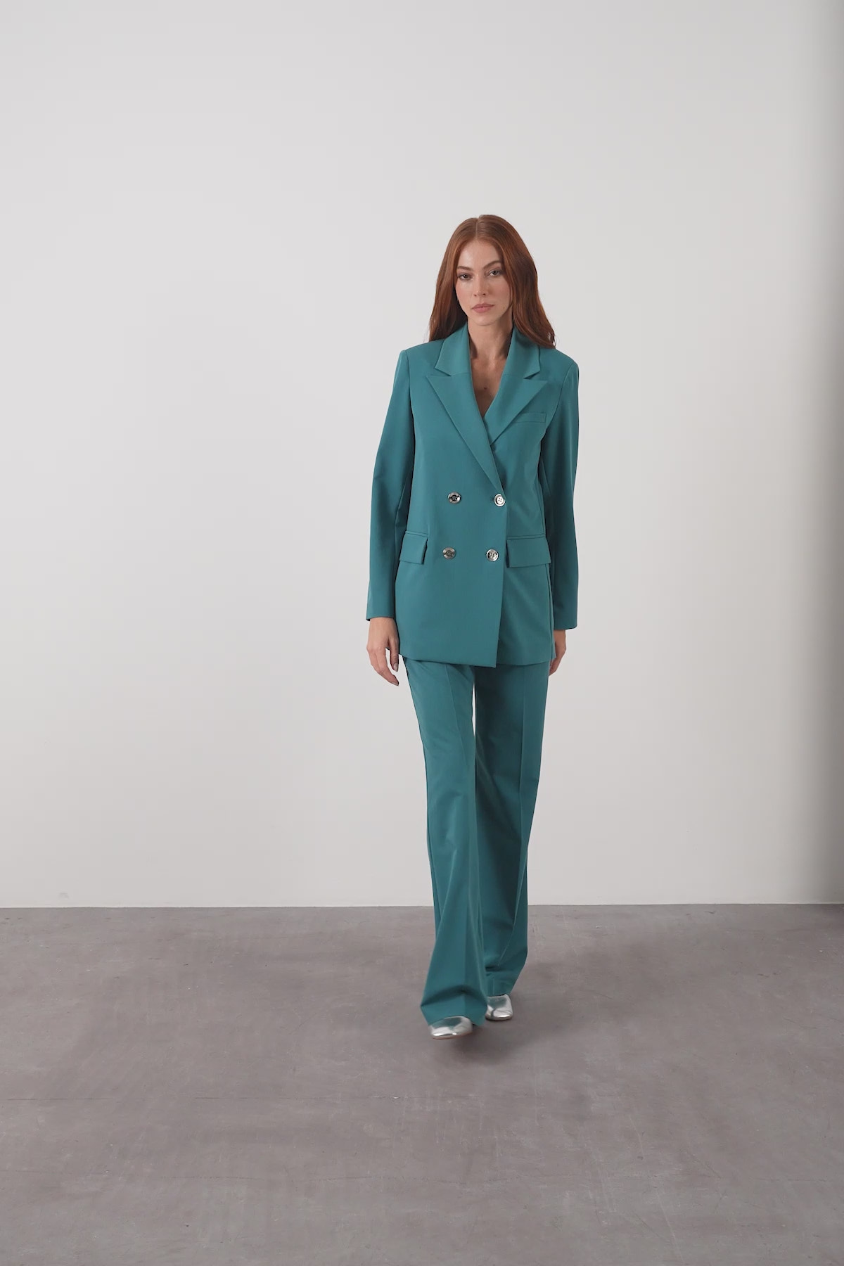 Kruvaze Kapamalı Ceket Ve Palazzo Pantolonlu Takım